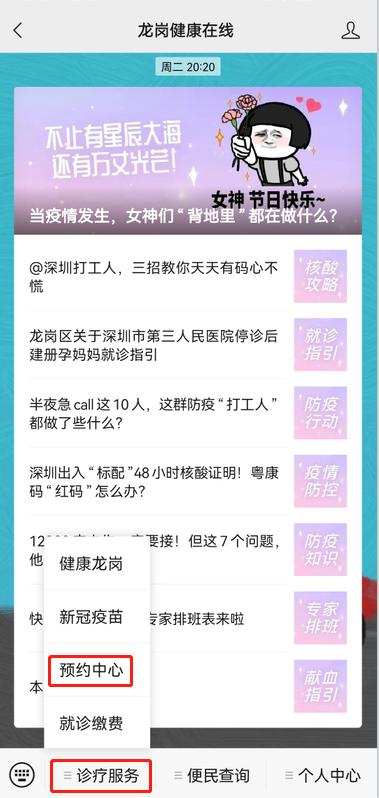 1. 微信扫码进入“龙岗健康在线”公众号。