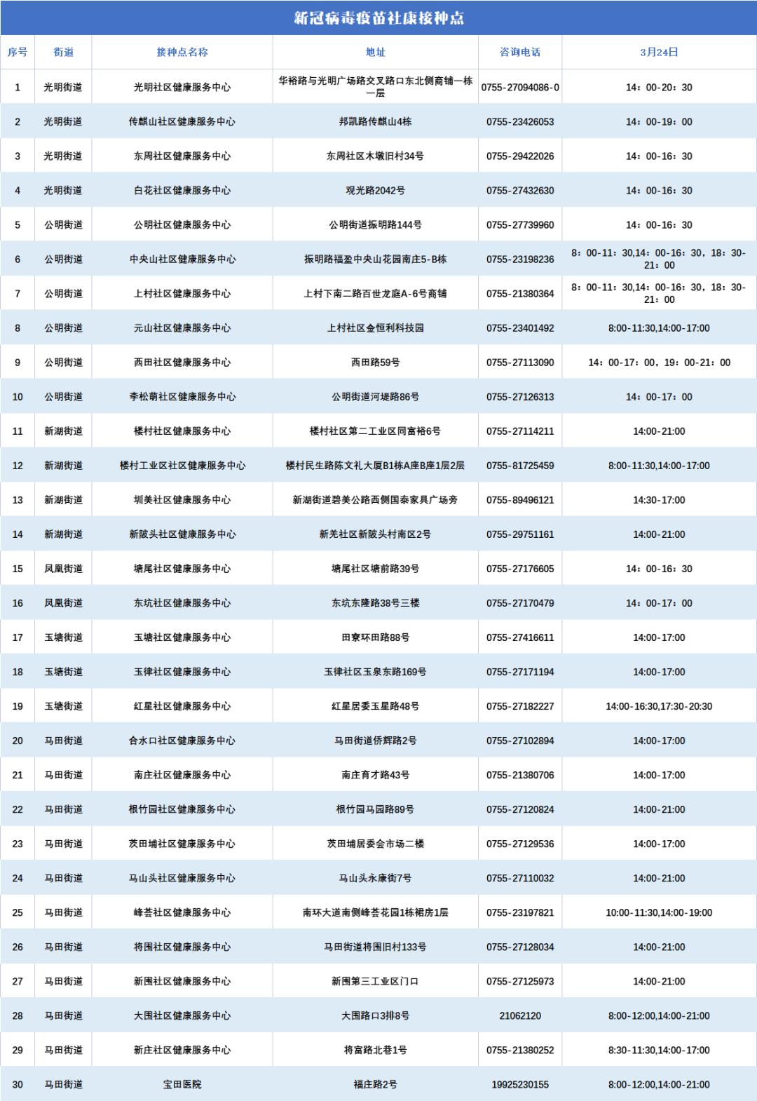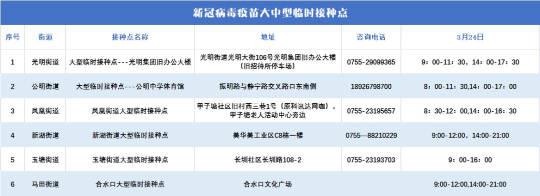 3月24日光明区开放接种点情况如下