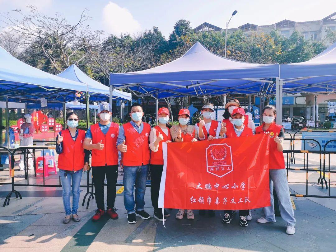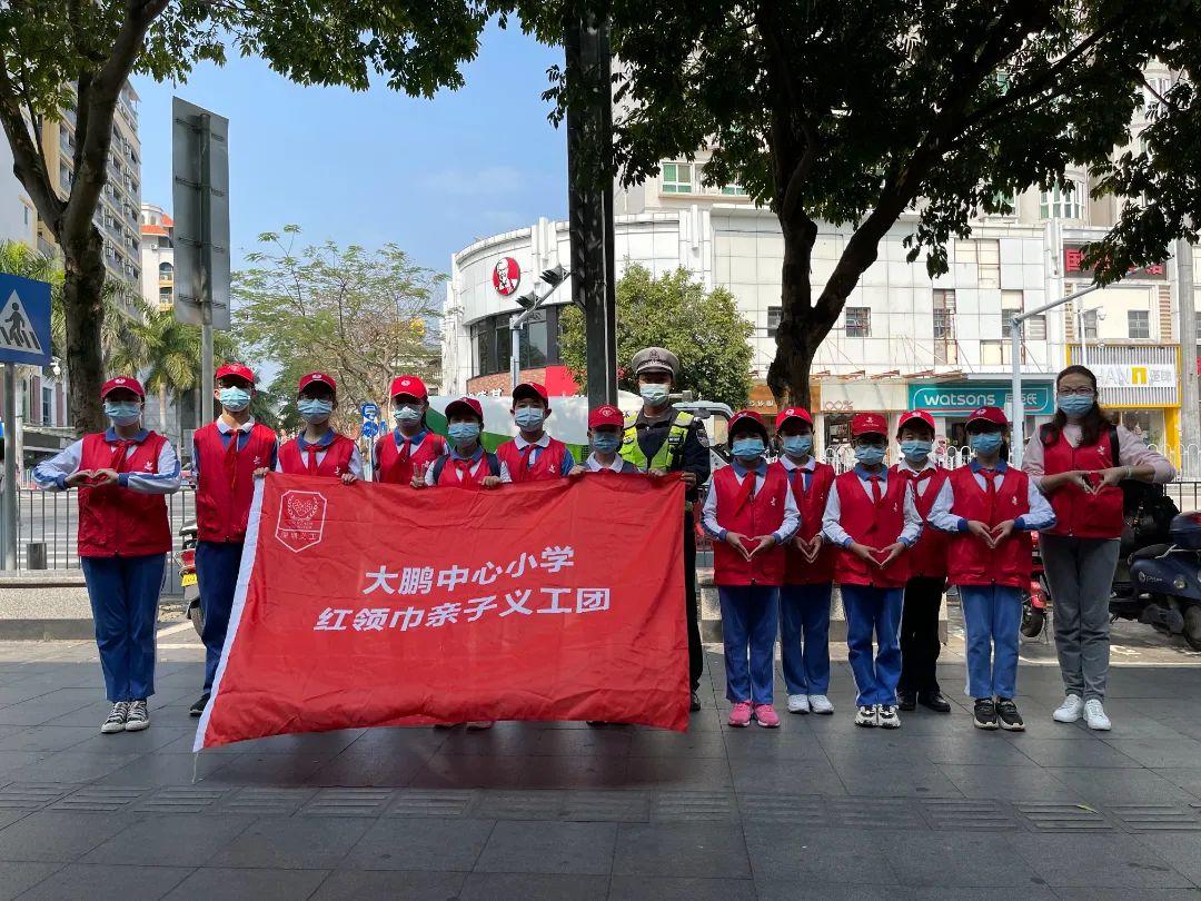 大鹏中心小学少先队大队部组织10岁以上的队员和家长注册成立了大鹏新区第一支红领巾亲子义工团,隶属于大鹏新区教育义工联,现在有通过深圳市义工联注册的亲子义工591人。