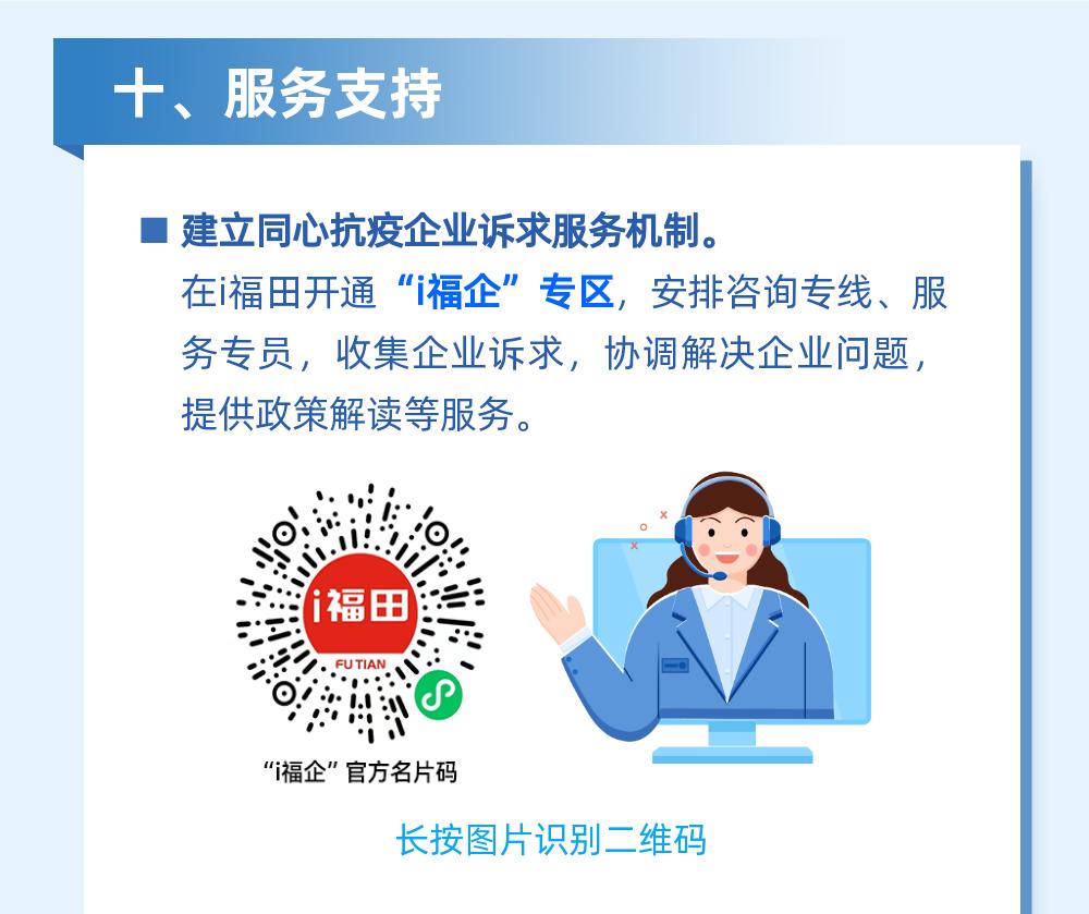 福田区发布的《福田区支持企业同心抗疫“十条”政策》包括10个条款19个项目,从“降租减租、稳企支持、贷款贴息、安心保险、社保补贴、稳岗支持、防护用品、防疫服务和设备应用、建筑业建设项目补贴、服务支持”等10个方面展开。福田的这“十条”政策呈现出三大特点:第一是关注到企业“租金高”、“用工难”的共性特点,提出了降租减租、社保补贴、返岗稳岗等举措,进一步降低企业的综合成本。第二是针对福田作为深圳商贸、服务中心的特点,突出支持资助餐饮、文化旅游、跨境运输等企业,尤其是针对受疫情影响同时驰援香港的跨境运输行业,给予精准扶持。第三是做好企业服务工作,建立企业诉求服务机制、设立“i福企”专区、法律e管家等,为受疫情影响产生的企业法律纠纷提供应急公共法律服务。