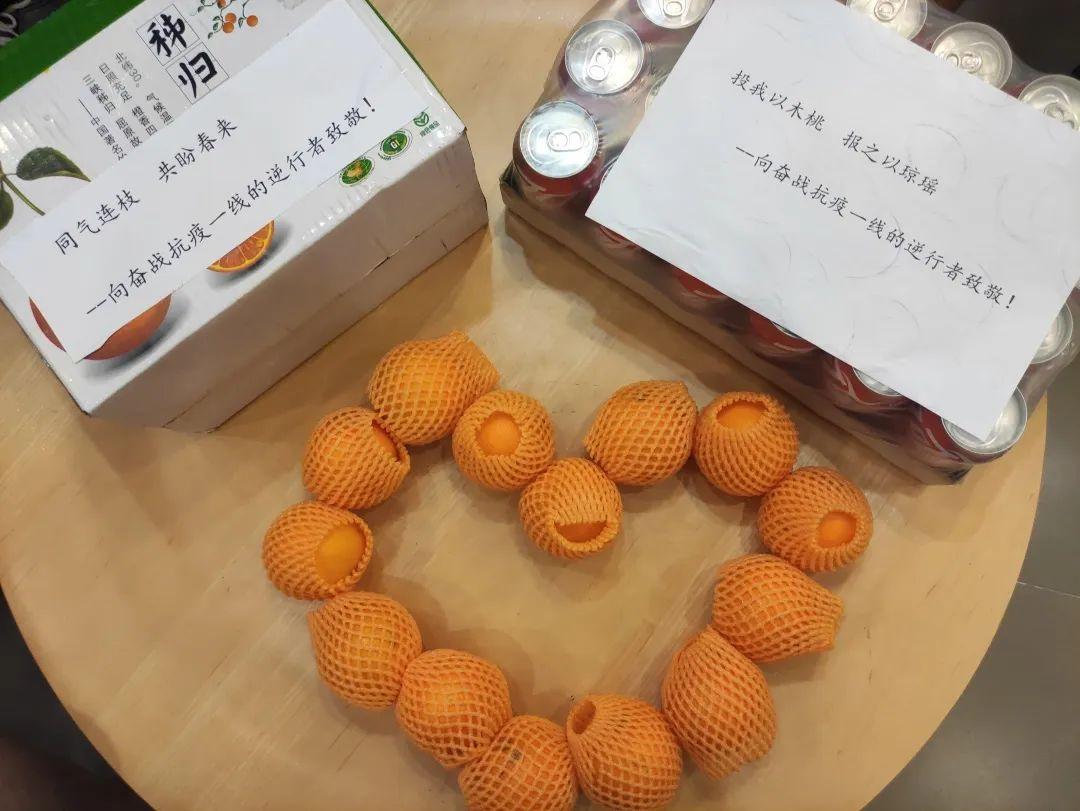 广发银行深圳分行联合武汉大学深圳校友会志愿者开展抗疫一线突击队慰问。其中广发银行深圳分行向抗疫志愿者捐赠102箱可乐,向奋战一线抗疫志愿者的贡献和付出致敬。武大校友会理事受秭归县果农委托,向奋战一线的志愿者赠送100箱大山里新鲜采摘的橙子,表达两地“同心连枝 共盼春来”的心意,并向深圳抗疫一线的英雄们致敬!