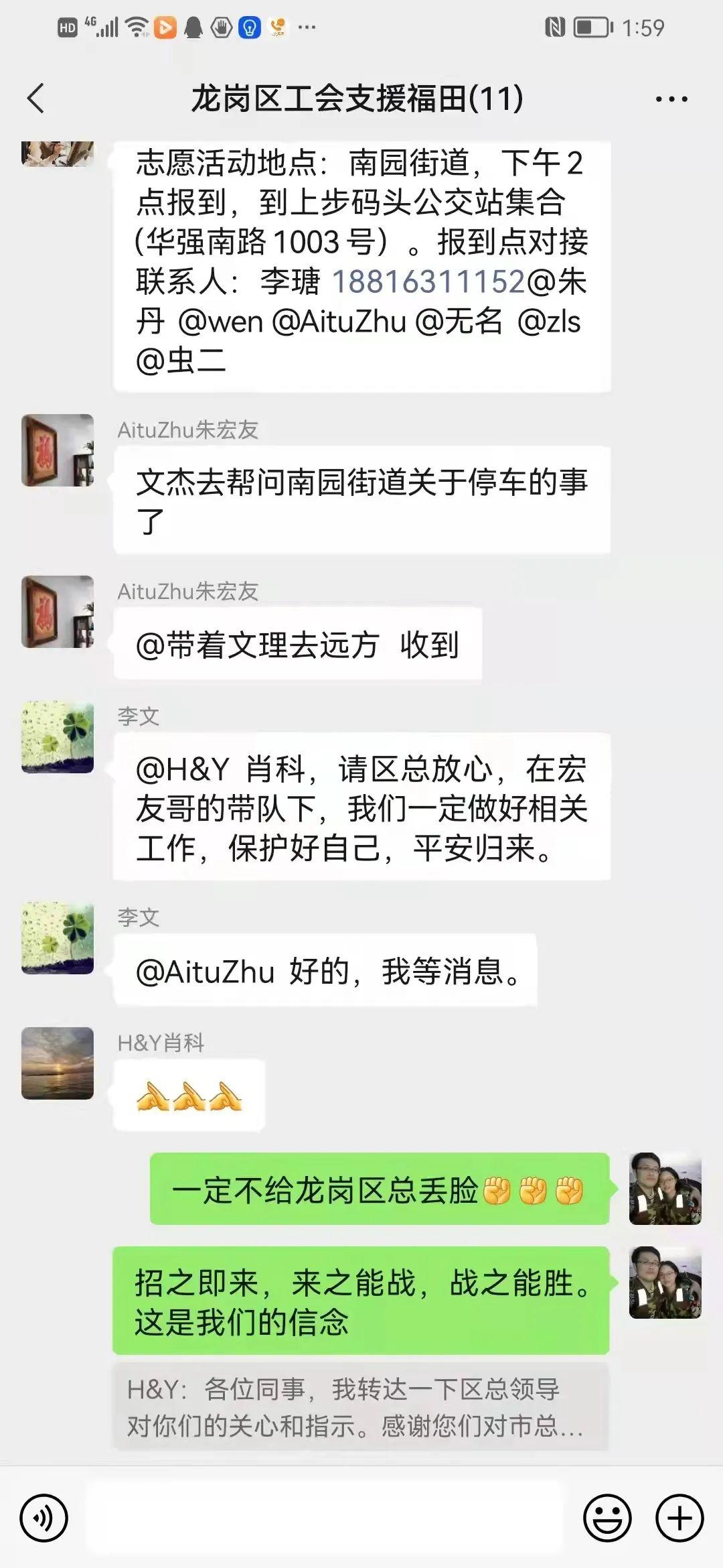 此次支援福田的抗疫突击队中有朱宏友、李文、何威、朱丹、郑金填、张丽莎6位职业化工会干部。接到通知的时候,他们有的还在码字写方案,有的正在走访企业,看到手机上的信息,便立即报了名,跟随突击队一起走进了南园街道赤尾村。
