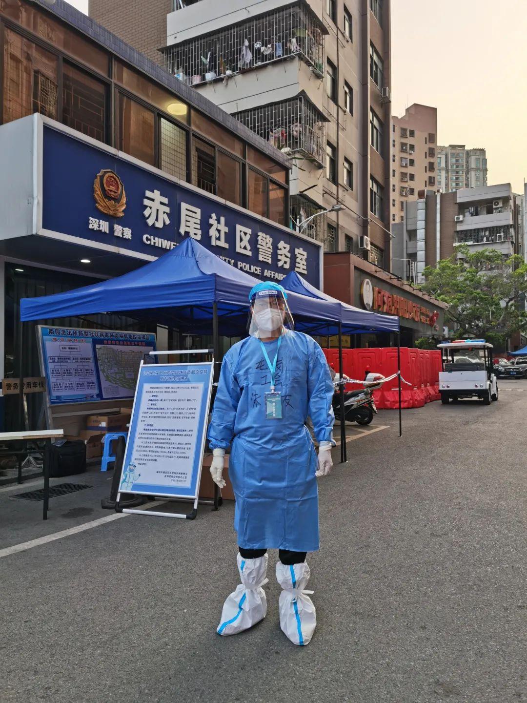 11日中午队员们各自出发在福田区园岭街道赤尾社区疫情防控指挥部集结。通过短暂的分工后,他和朱丹、郑金填分在了第四组,服务区域和人数在赤尾村四坊一共40栋约1600人,这个区域也是第一例新冠阳性发现的区域,属于重点管控区。在接下来的几天,他们组负责配送该区域40栋约1600人的生活保障物资和快递等,满足居家隔离群众的基本需求。这是他第一次穿上防护服(人家都叫大白),心中莫名有了一种使命感,为工会人在新冠疫情防控中贡献一点绵薄之力。