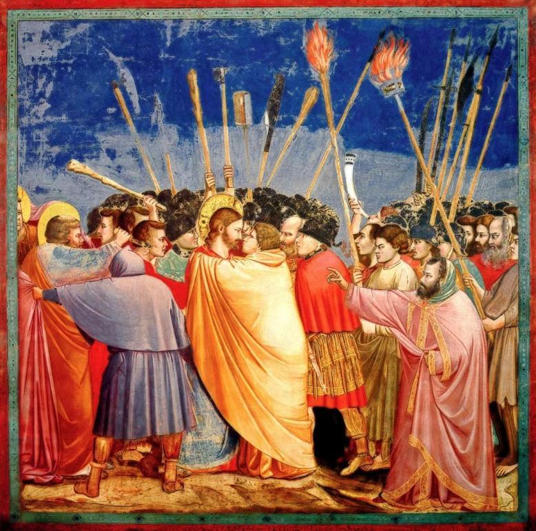 《犹大之吻》是十三世纪后期弗洛伦萨大画家乔托·迪·邦多纳创作的湿壁画,现收藏于意大利帕多瓦的斯克罗威尼礼拜堂,它是《圣经》故事之一,犹大是出卖耶稣的叛徒。