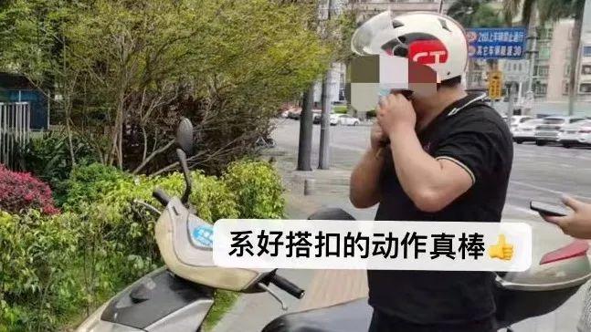 按规定佩戴好安全头盔,系上搭扣再出发。