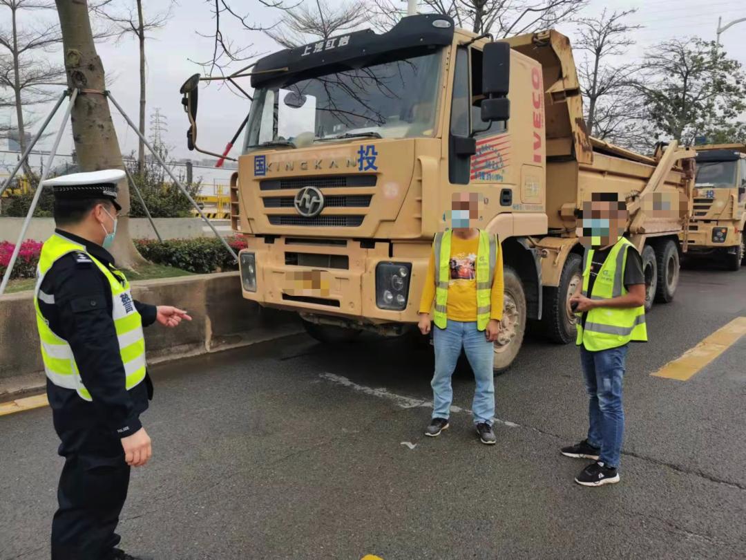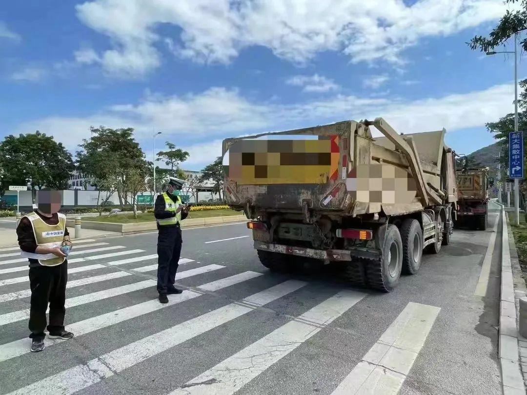 深圳交警针对各重点路段工地、路面泥头车等重点进行排查整治,一经发现违法行为,则从严处罚。期间,深圳交警扩大宣传范围,通过劝导、宣讲等方式对工地负责人,泥头车驾驶员等进行交通安全教育。