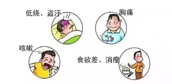 结核病的病状比较隐匿,不典型,归纳起来全身结核病中毒症状有低热、盗汗、疲劳、食欲不振、体重减轻。
