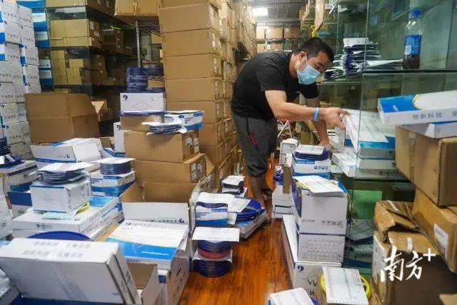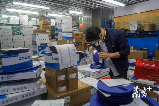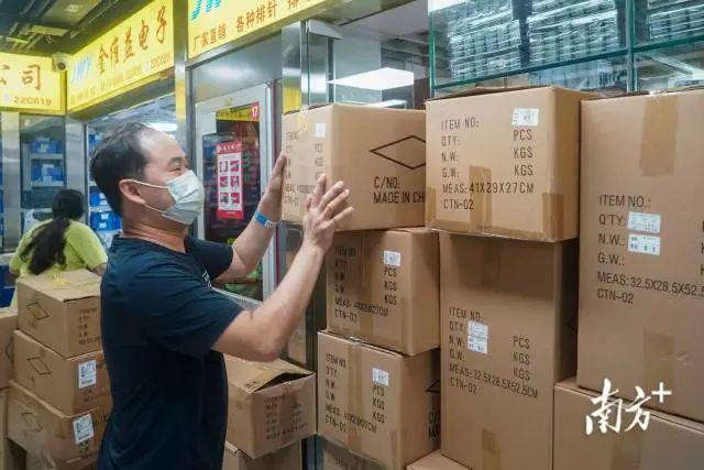 走进其中一家电子市场,便可目睹到,商家正忙着打包电子元器件,“呲溜呲溜”的胶带声此起彼伏。