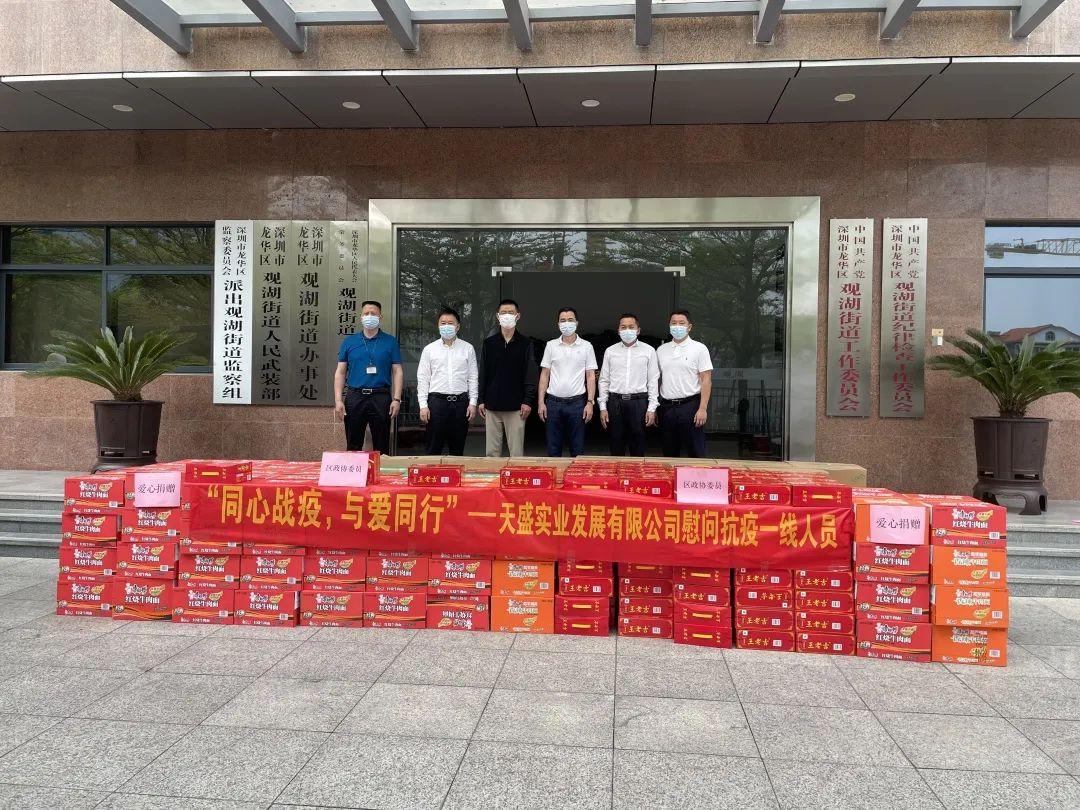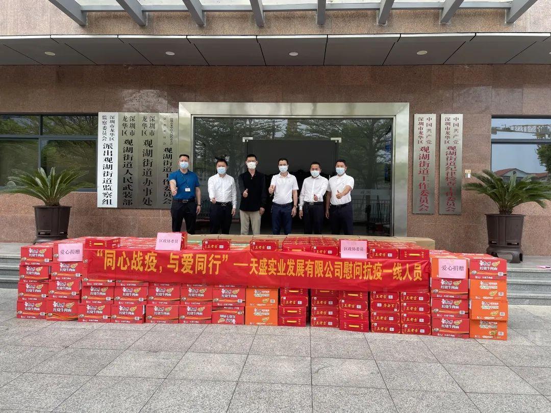 3月18日,区工商联(总商会)副主席单位深圳市天盛实业发展有限公司为了给一线抗疫人员提供有力生活保障,捐赠了红烧牛肉面、王老吉等生活物资,为社区疫情防控工作尽一份力。