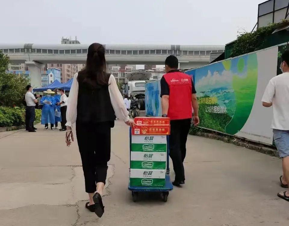 3月18日,区工商联(总商会)会员单位深深圳市银潞科技发展有限公司考虑到现在天气炎热和社区抗疫一线的工作人员在外辛勤付出,主动为龙华区新石社区核酸检测采样点送去红牛、纯净水等物资。