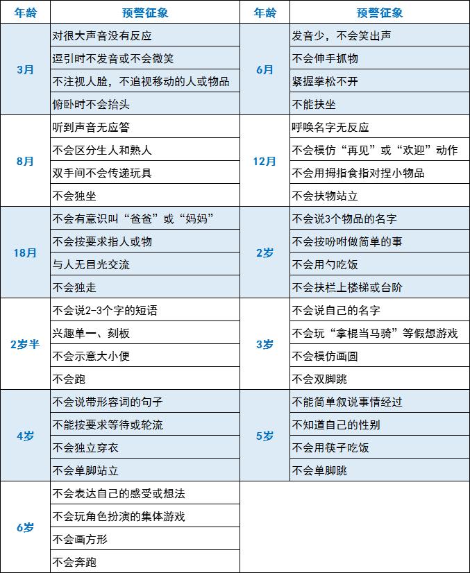3个月-6岁自闭孩子“自测表”