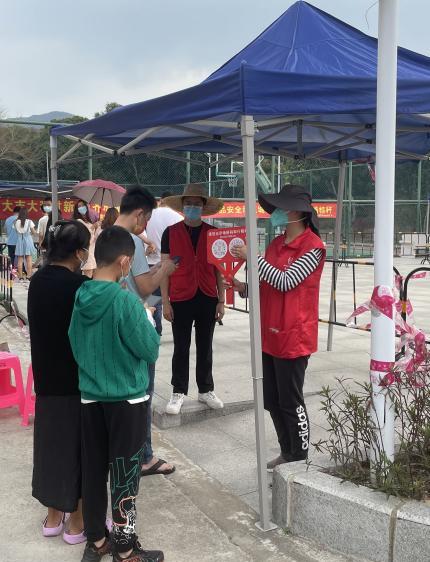 3月8日,学校副校长邓宇、教师李泽钦、保安彭志彪一行3人来到梅河社区,支援河背村的防疫工作。