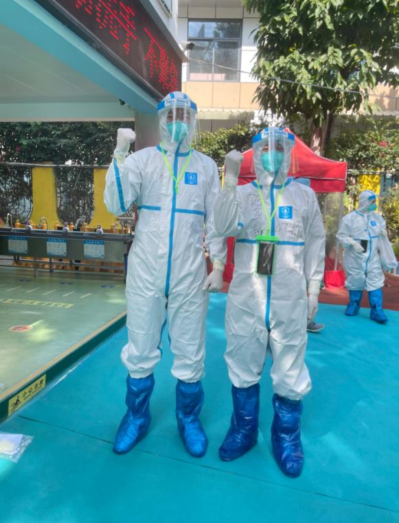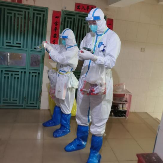身穿战时袍,辛苦无所顾。副校长邓宇负责挨家挨户“扫楼”,宣传防控知识,确保每一位居民每天完成核酸检测。作为组长的他,认真负责每个组员的物资和后勤保障。