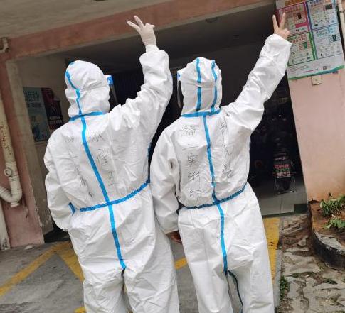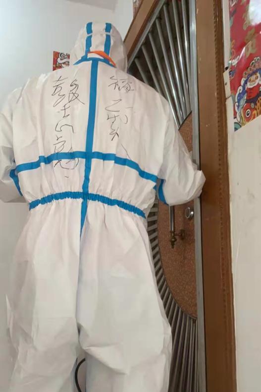 李泽钦老师负责河背村XX栋管控楼的上门核酸采集,居民都是次密接。他每天9点穿着防护服爬12层楼做咽拭子采样,叮嘱居民居家医学观察,同时还要做好个人防护、保持个人卫生,每天持续工作4个小时以上,承担着很大的身体及心理压力。