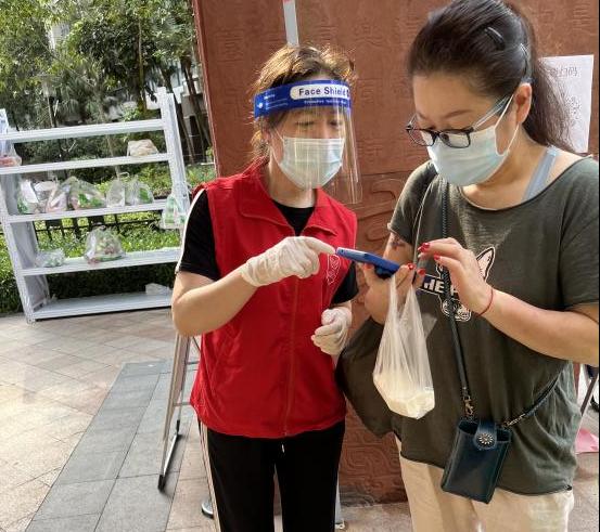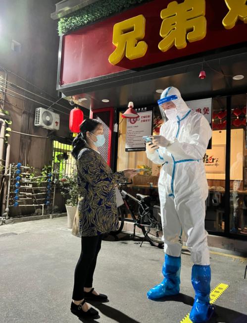 周玉萍老师协助社区核酸检测扫描场所码,查验身份证