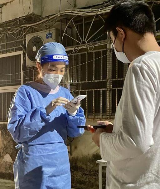宋丽红老师在管控区参与核酸检测志愿服务工作