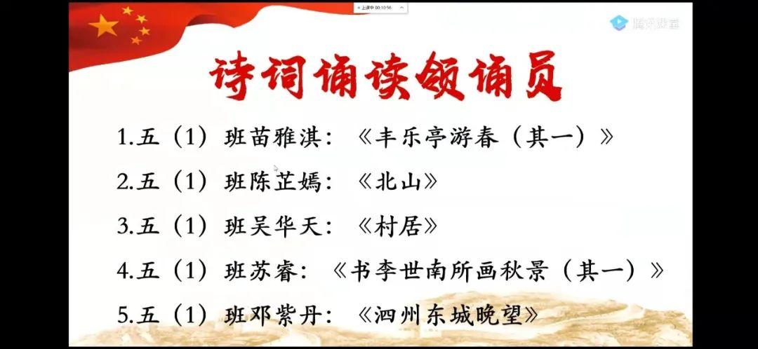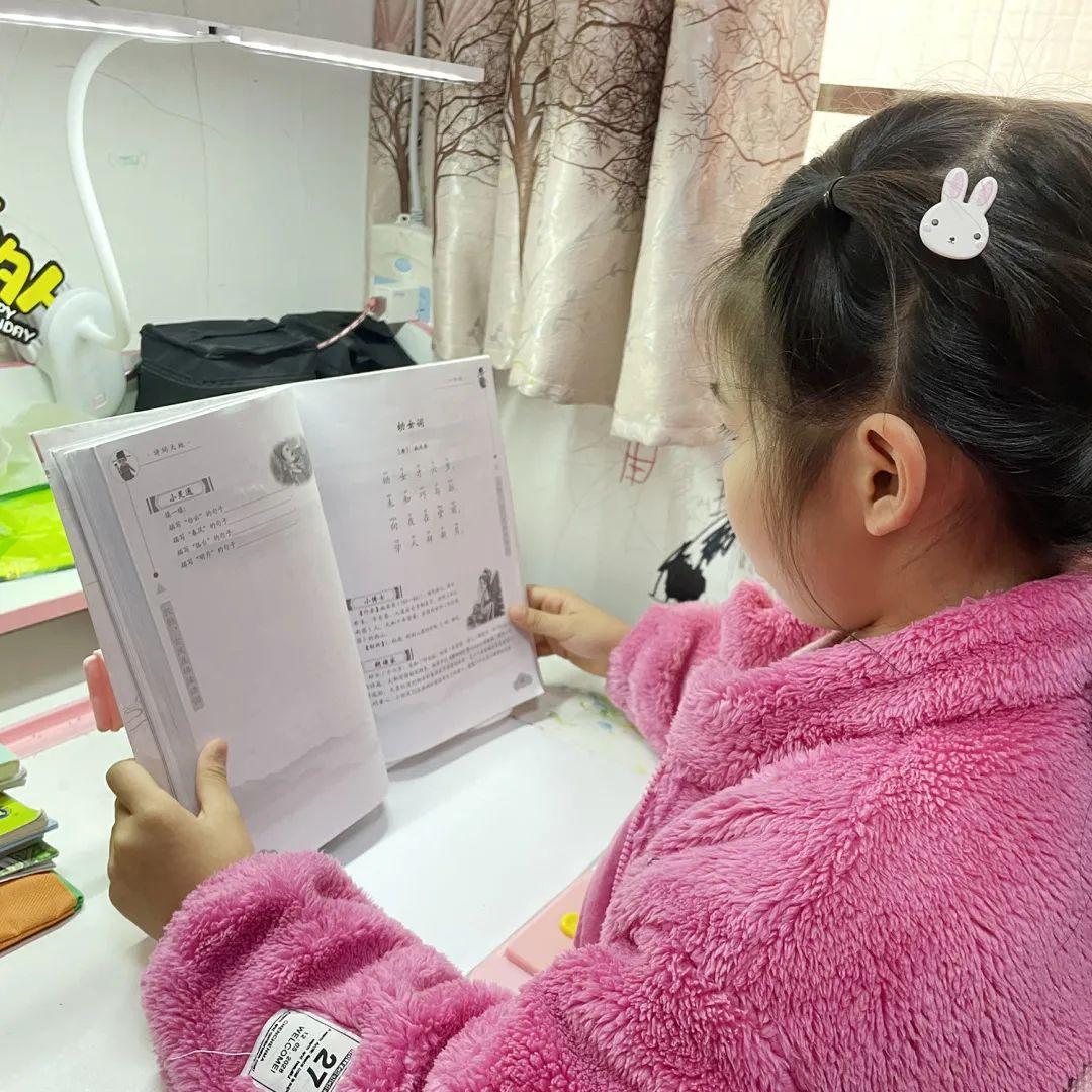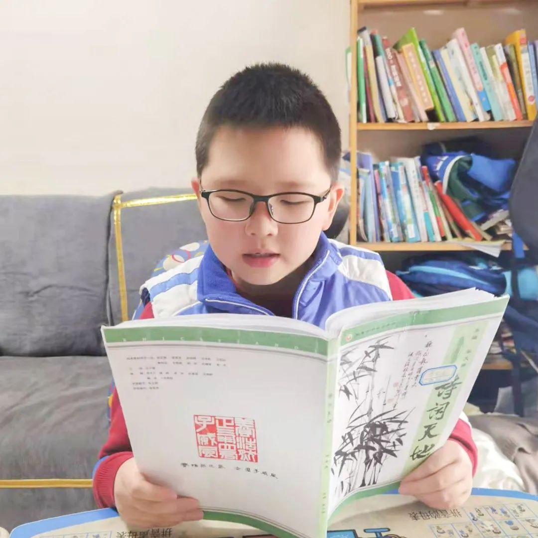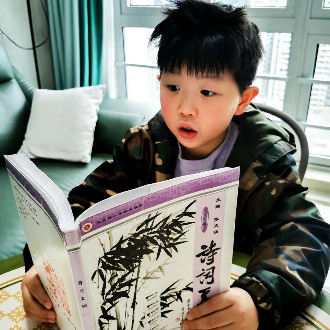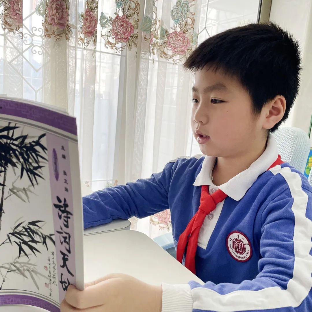 早上9:00-9:10,熟悉的“好诗天天诵”与大家如约见面。孩子们翻开《诗词天地》,老师播放优秀学生的范读作品,孩子们自读、跟读、与同学老师在线互动读、PK背……短短十分钟的晨诵,就在一遍又一遍的诵读声中结束了,孩子们把意犹未尽的情愫、把满腔的诵诗热情蓄满,留待明日再见!