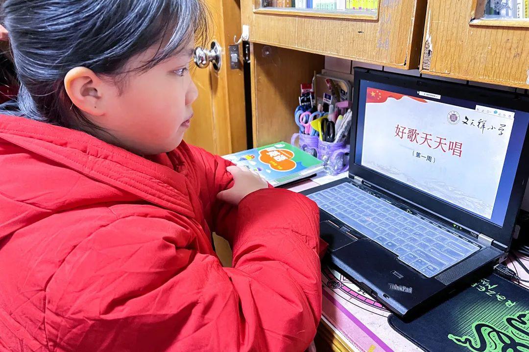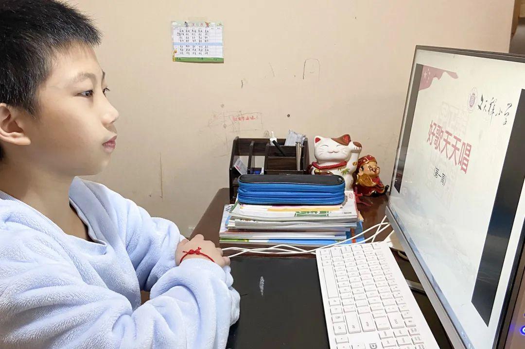 每日11:10,在同学们居家学习略带疲惫感之时,悠扬的乐声传来,是“好歌天天唱”给孩子们送来一缕轻柔而温暖的春风。每周一歌,孩子们跟着哼,跟着唱,在愉快的歌声中给早上的空中课堂画下一个完美的句号。