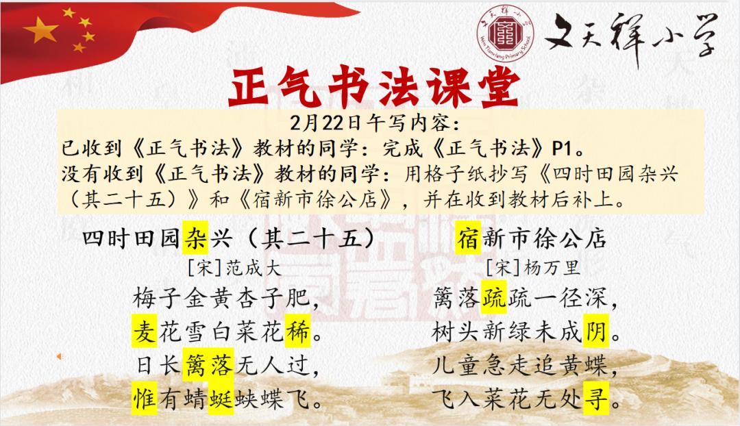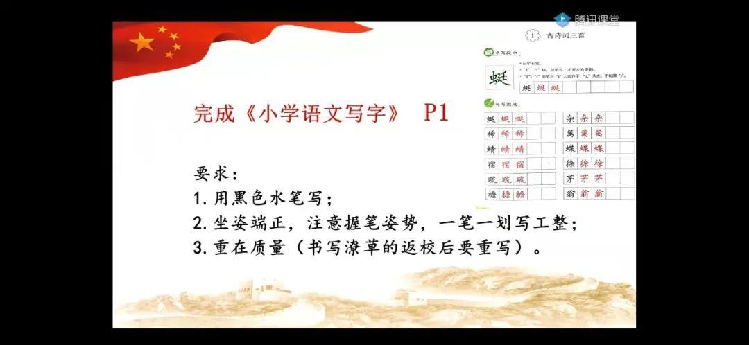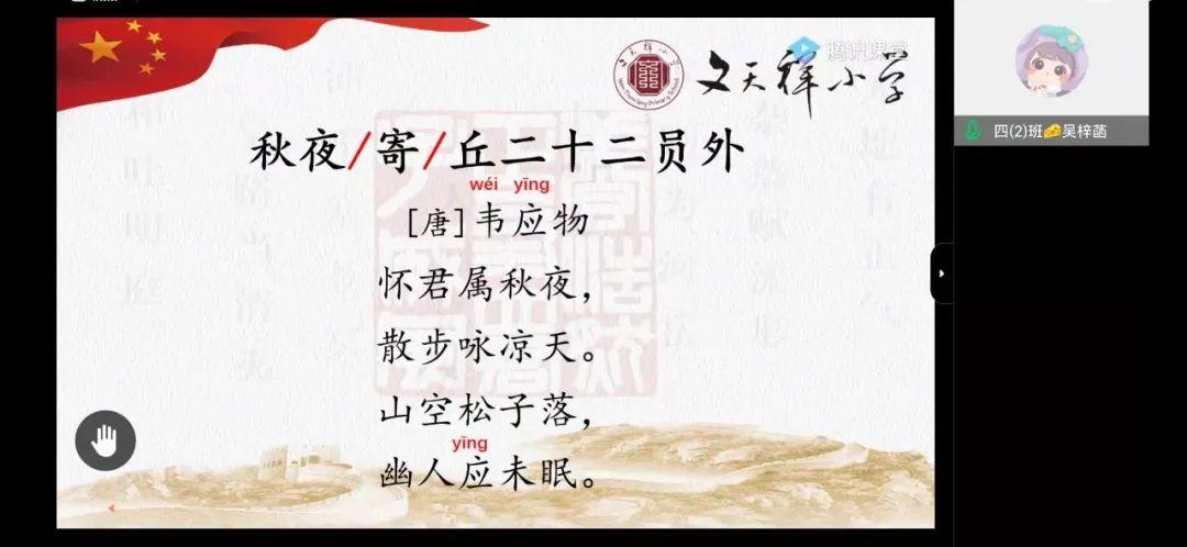 在线教学中的“特色课程”,延续正常的校园日常,开设“好诗天天诵”“好歌天天唱”“正气书法课堂”三项特色活动。还是原来的时间点,还是熟悉的提示音,还是流转的古琴声,还是经典的诗词味……为居家学习的孩子们送去如沐春风的抚慰。