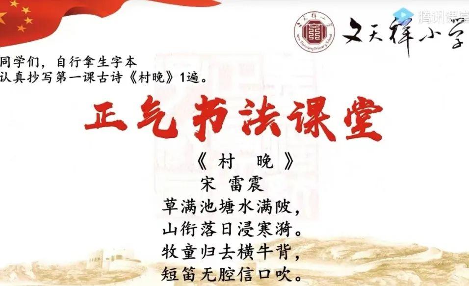 文天祥小学、文天祥小学(岗厦)教师齐携手,线上诗词领诵、在线PK互动、创意书法写作、经典歌曲吟唱……在声情并茂的诵读吟咏中,在一笔一划的汉字书写中,在放声歌唱的舒展释放中,经典诗词成了浸润的养料,特色课程成了孩子们张扬个性、舒展心灵、自我成长的最佳渠道,而正气精神在在线学习的特色课程中氤氲与飞扬。