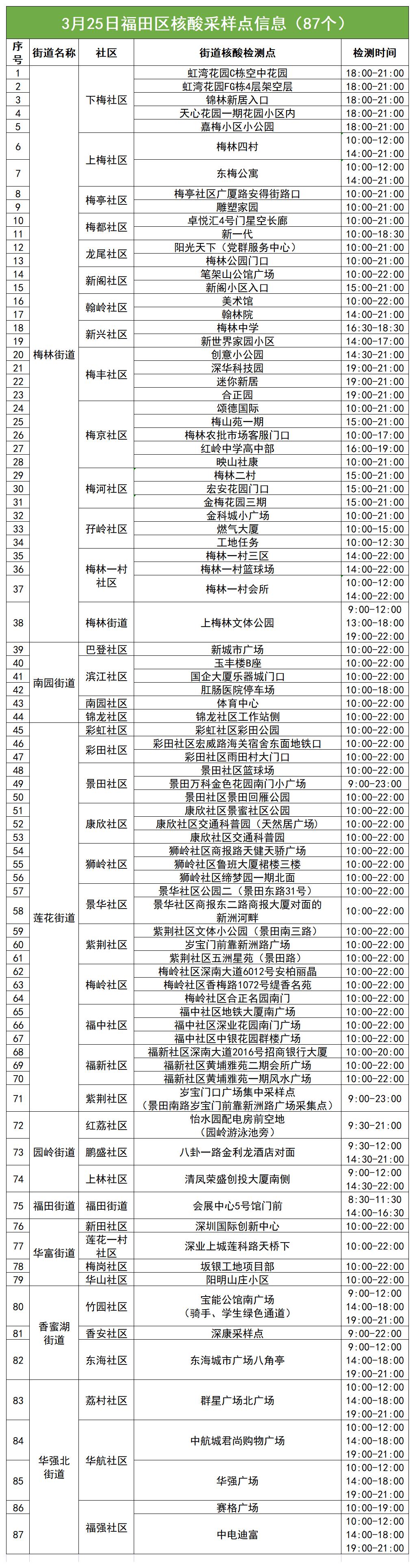 需要注意的是,因社区小区、城中村实行“居民白名单制”管理,免费核酸检测采样点名单及检测时间具体以各街道部署为准,请市民持续关注。