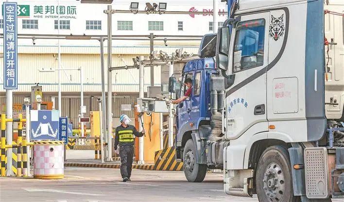 3月21日,工作人员对进入深圳前海综合保税区车辆进行扫码打卡检验。何龙 摄