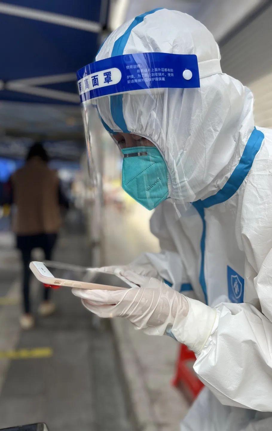 查验健康码、扫核酸码、维持秩序、发放贴纸等各项防疫环节,他们都一丝不苟,确保核酸检测工作高效进行。忙碌的工作,让他们忽略了疲惫,不停滞的脚步,使他们忘记了时间。