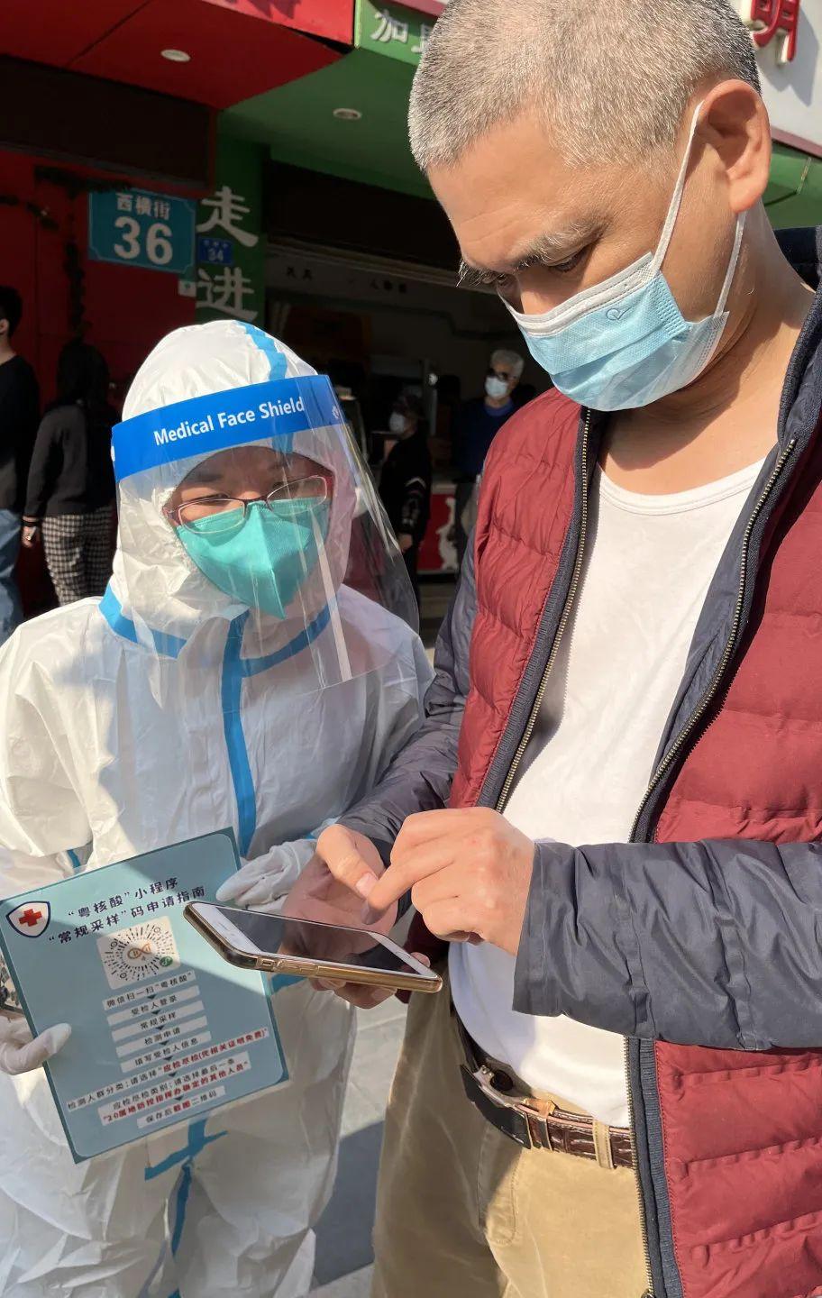 教师志愿者们每日按时到社区核酸检测点报到,全天候待命,投身于不同的工作中。