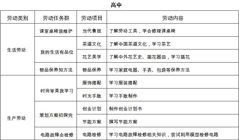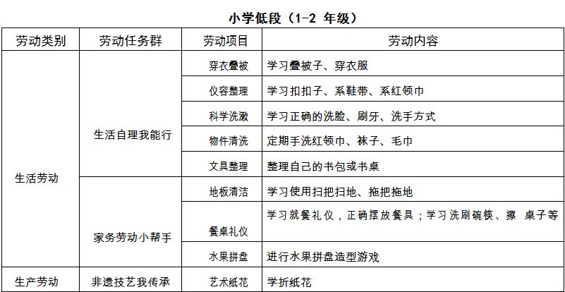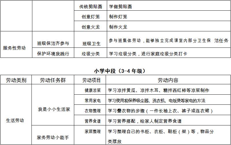 中小学劳动教育的实施方案》