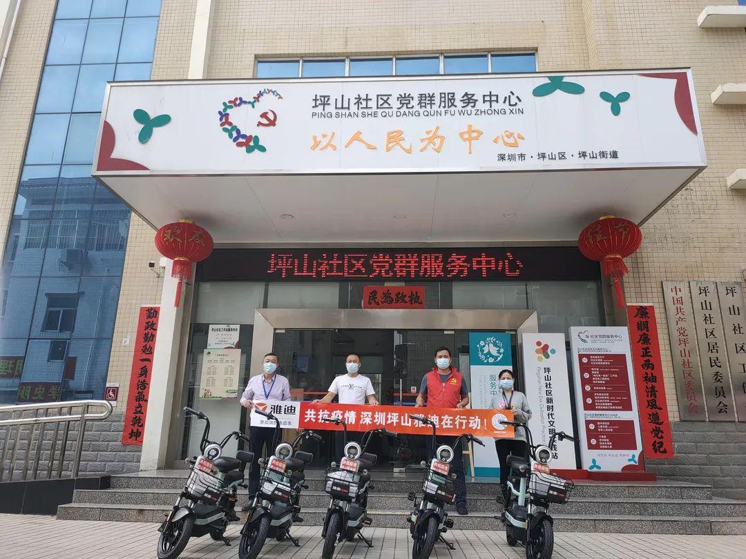 除了给防疫工作者送凉茶、水果等,坪山社区还多了5个防疫“小帮手”,爱心商家向社区捐赠了5辆电单车,让社区抗疫更加有速度、有力量。瑜伽培训机构老师公益免费为社区居民开展“瑜你齐战疫,宅出幸福家”线上瑜伽服务,让社区居民居家防疫更安心、更舒心。