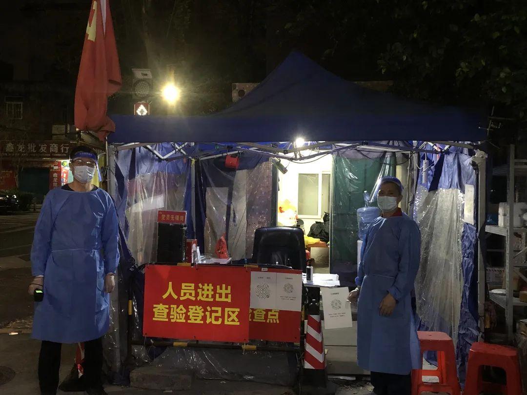 △ 党员志愿者、退伍军人志愿者夜晚在卡口防疫值守