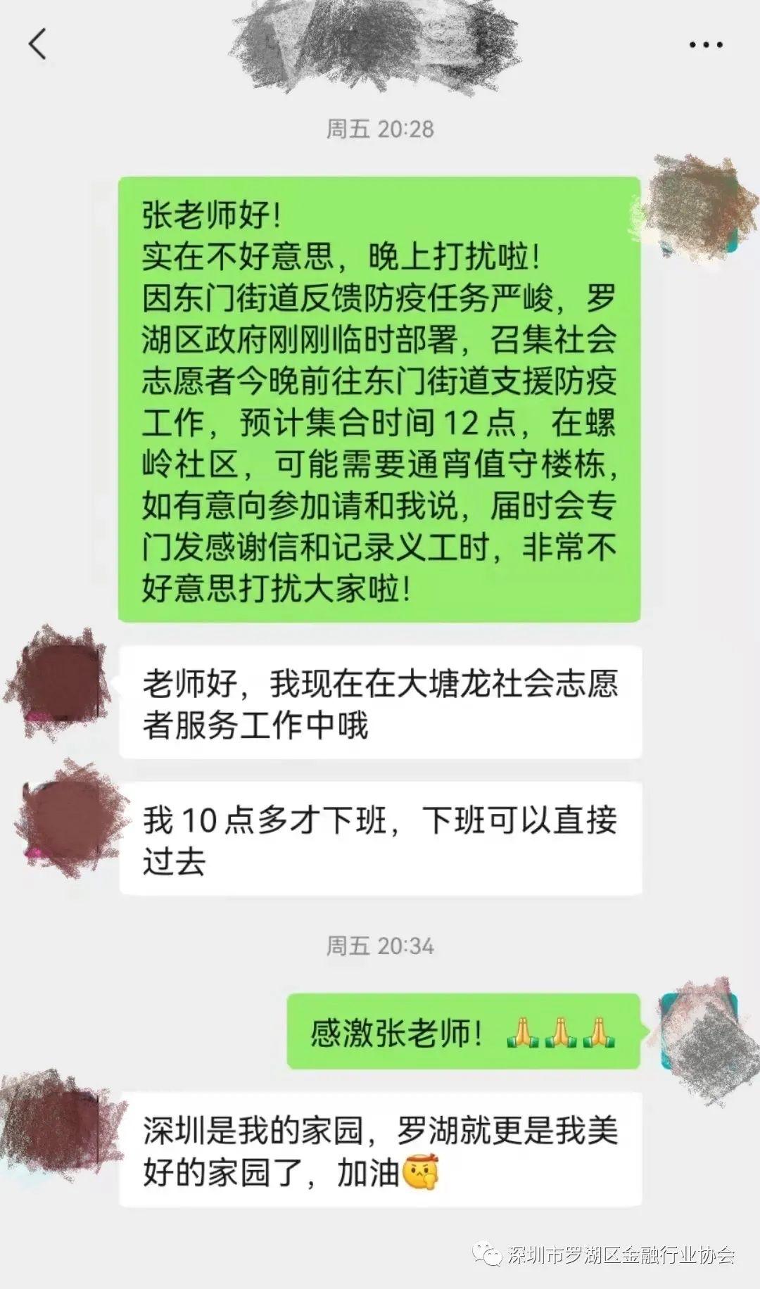 疫情就是命令,防控就是责任。罗湖区金融行业协会将继续与辖区全体金融机构一道,做科学防疫的践行者、防疫措施的示范者和健康平安的守护者。同时希望罗湖区金融企业继续发扬“奉献、友爱、互助、进步”的志愿精神,积极参与疫情防控志愿活动,尽己所能贡献力量,彰显罗湖金融人的使命和担当。