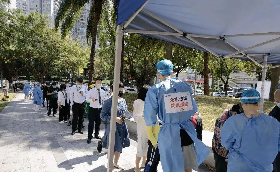 由人保财险深圳市分公司和浦发银行深圳文锦支行多名青年志愿者组成的志愿队,主动请缨前往交通最不便利的检测点提供服务,志愿者们分头行动,每人重点服务一个检测点,切实有效缓解了社区工作人员压力。