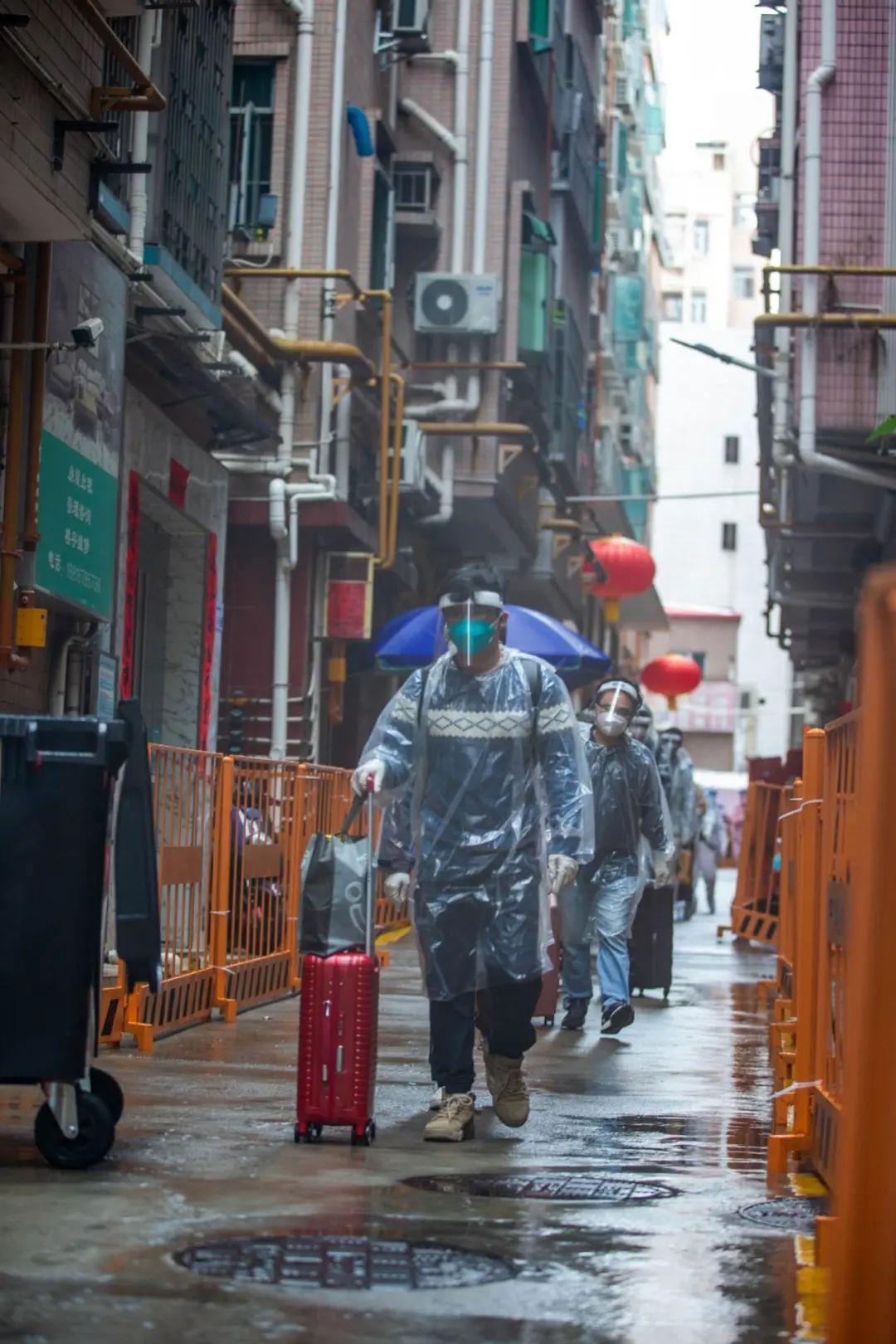 3月24日,福田区上沙塘晏村的转运工作在雨中进行,当天共安排11辆公交巴士,从上午到下午一共转运228人到大鹏安置点,入住101套房,各个环节紧密衔接,整个转运过程安全有序。