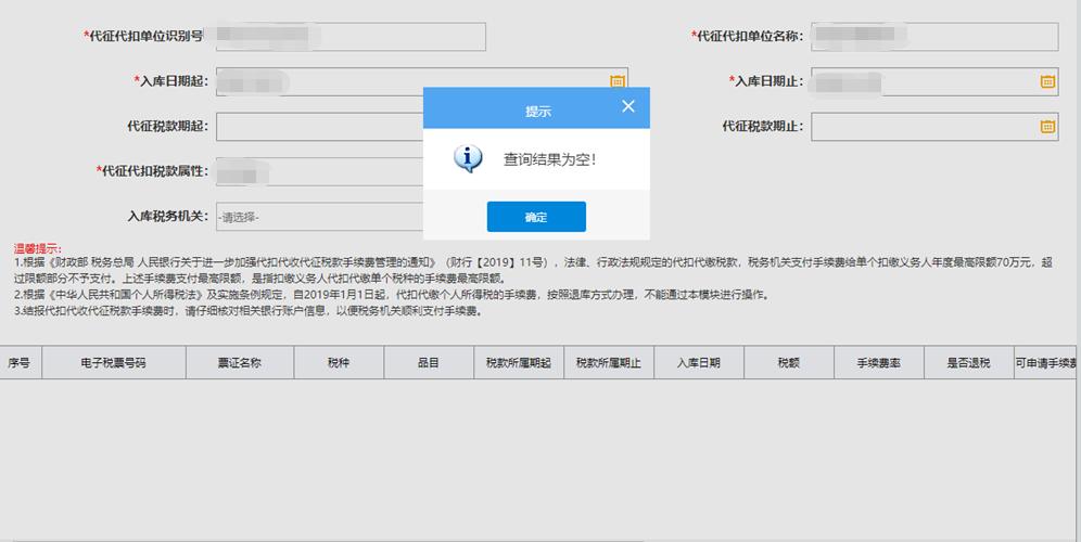 1. 所选择数据中存在查询不到对应手续费率的委托代征协议或者征收项目代码已发生变更;