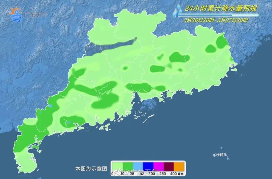 26日,粤北、珠三角中北部市县有大雨局部暴雨,粤西多云间阴天为主有分散阵雨,其余市县阴天转中雨局部大雨。