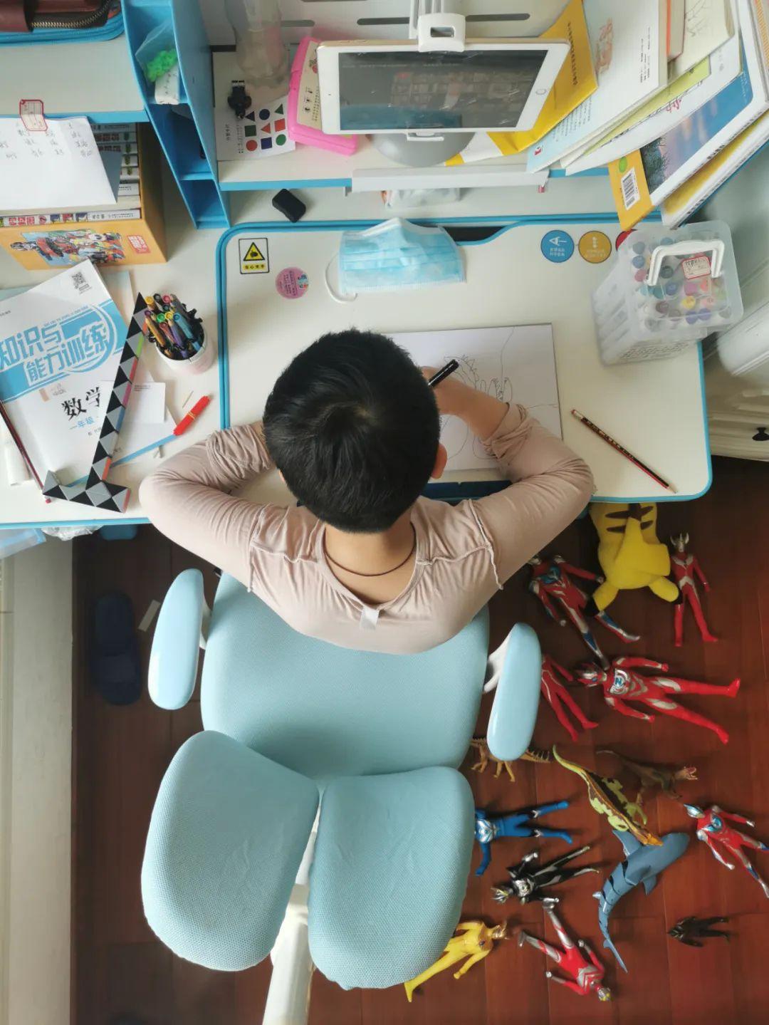 配合防疫工作,小朋友在家上网课。偷偷拍下了小朋友上网课的样子——穿着睡衣,放下玩具就端坐桌前开始上课,真是学习玩耍“无缝衔接”呀!