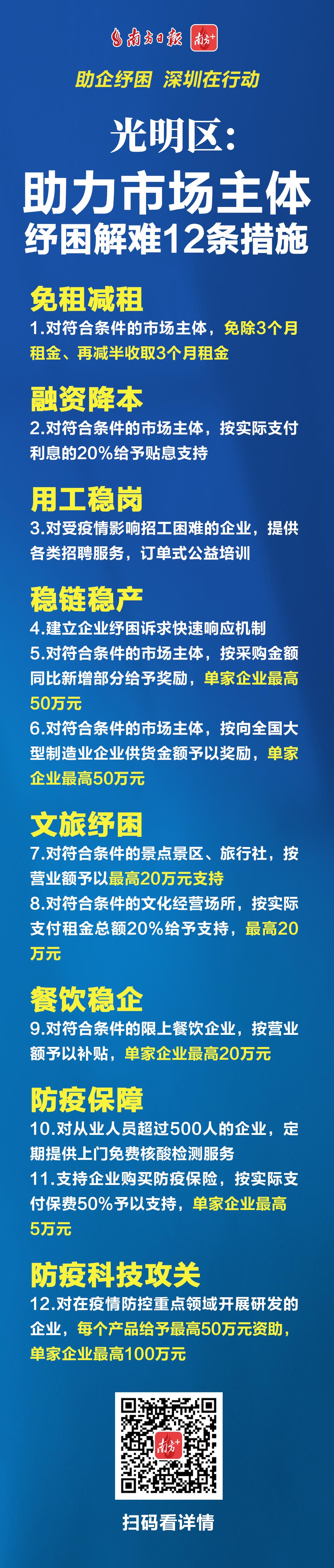 这是光明区为深入贯彻落实国家、省、市决策部署,统筹做好疫情防控和经济社会发展,支持市场主体积极应对疫情,进一步帮助市场主体纾困解难,结合辖区实际,为光明区受疫情影响的企业送上的暖心“大礼包”。