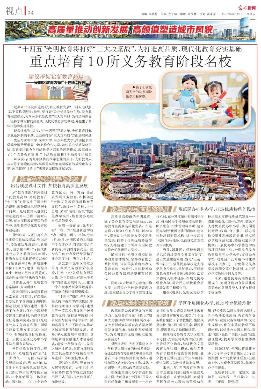 ☞近日,作为光明区重大行政决策,《光明区教育发展“十四五”规划》经过专家论证、听证、风险评估等程序后正式出台,并印发实施。