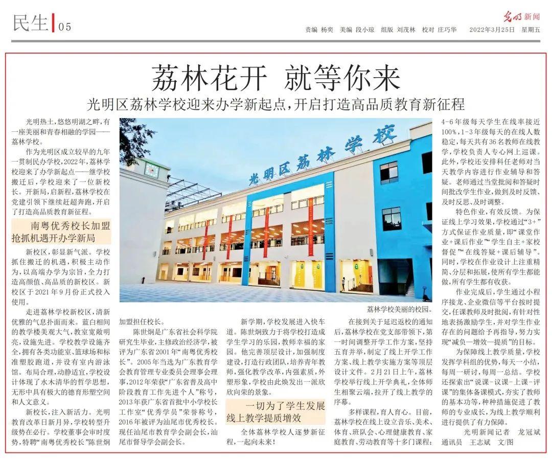 ☞ 作为光明区成立较早的九年一贯制民办学校,2022年,荔林学校迎来了办学新起点——继学校搬迁后,学校迎来了一位新校长。开新局,启新程,荔林学校在党建引领下继续赶超奔跑,开启了打造高品质教育新征程。