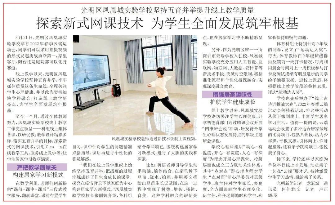☞ 线上教学以来,光明区凤凰城实验学校线上教学工作亮点纷呈——科组线上集体备课,以研促教;教学设计精彩多样,落实五育并举的目标;探索新式的网课技术,引用Class in在线教学工具,服务线上教学等,为学生全面发展筑牢根基。