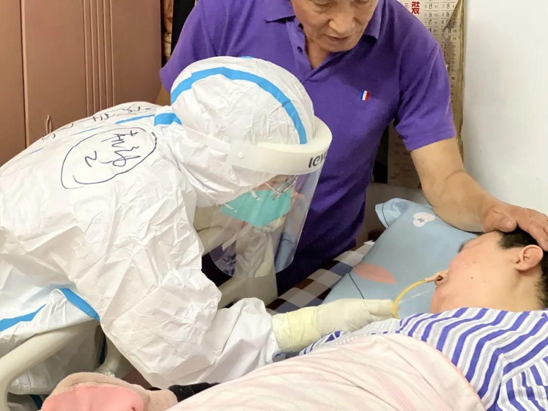 林女士今年已经95岁高龄,因为身体不便,二人负责联系医护人员,给老人家上门做核酸。隔离不隔爱,定期了解他们的身体状况,帮助解决生活所需,及时送上安慰,这些工作都很重要。