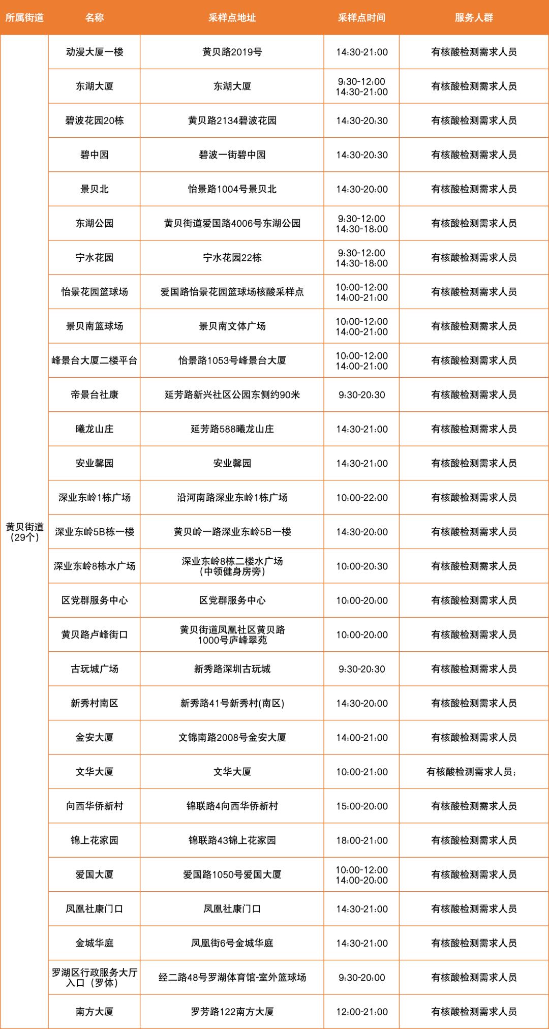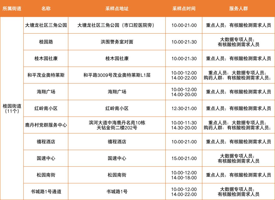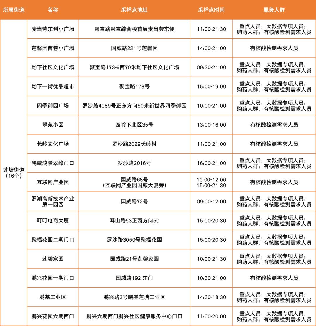 罗湖区设置以下免费核酸采样点