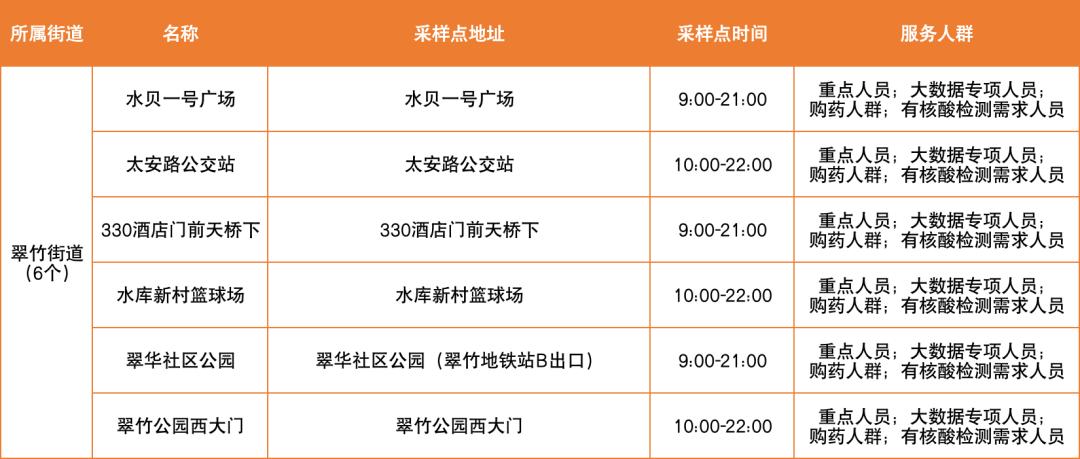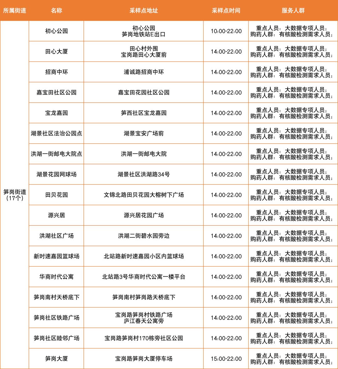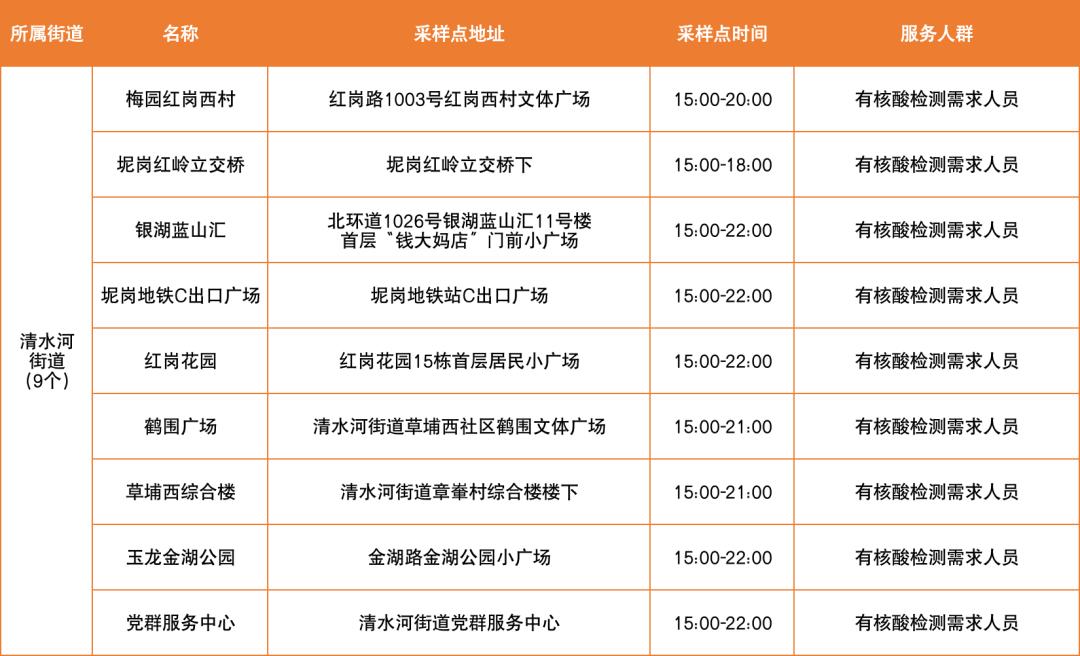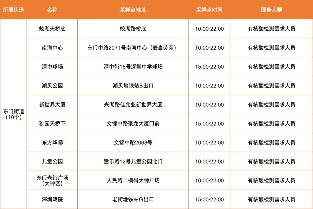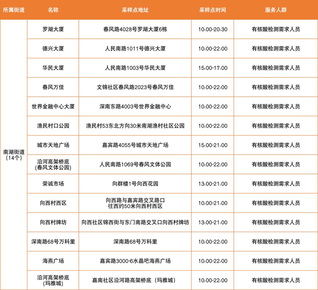 罗湖区设置以下免费核酸采样点