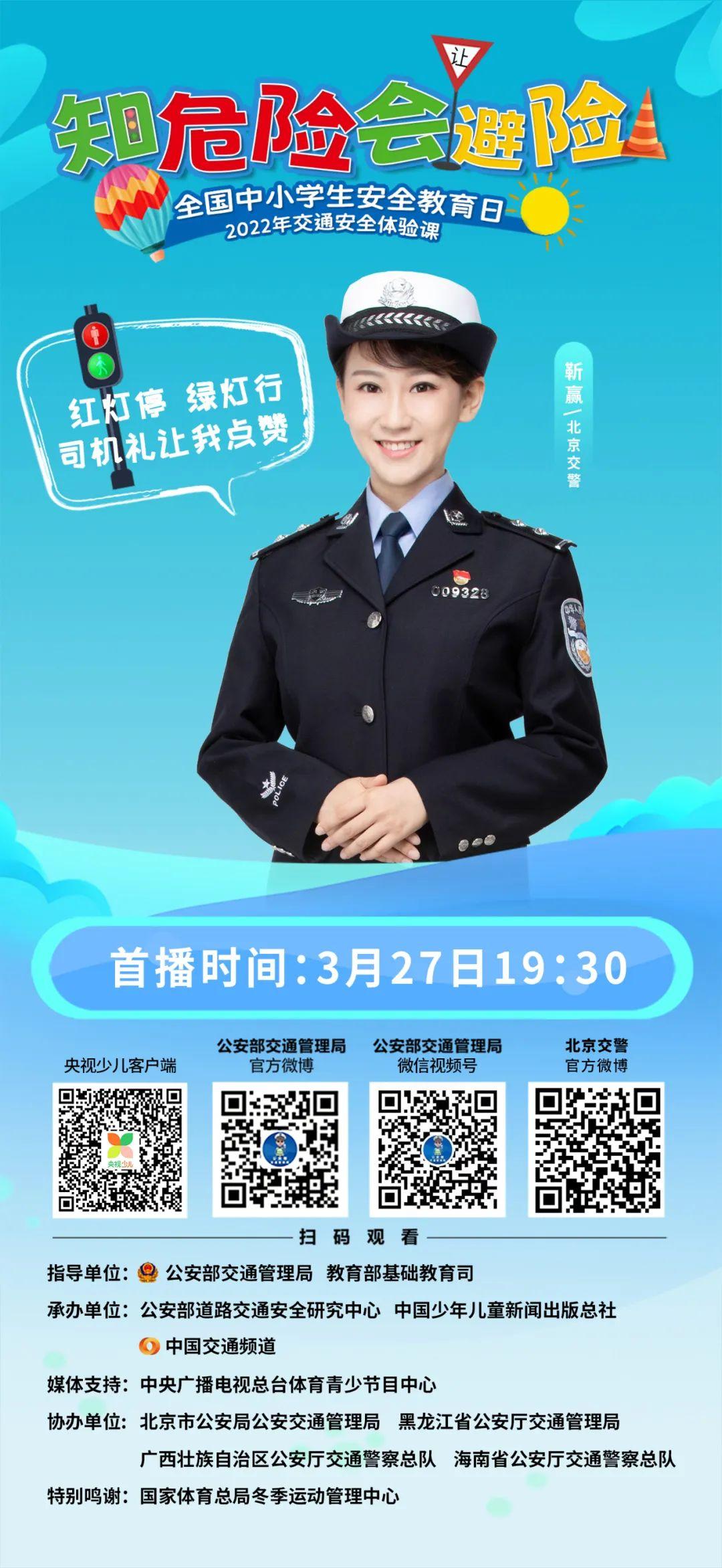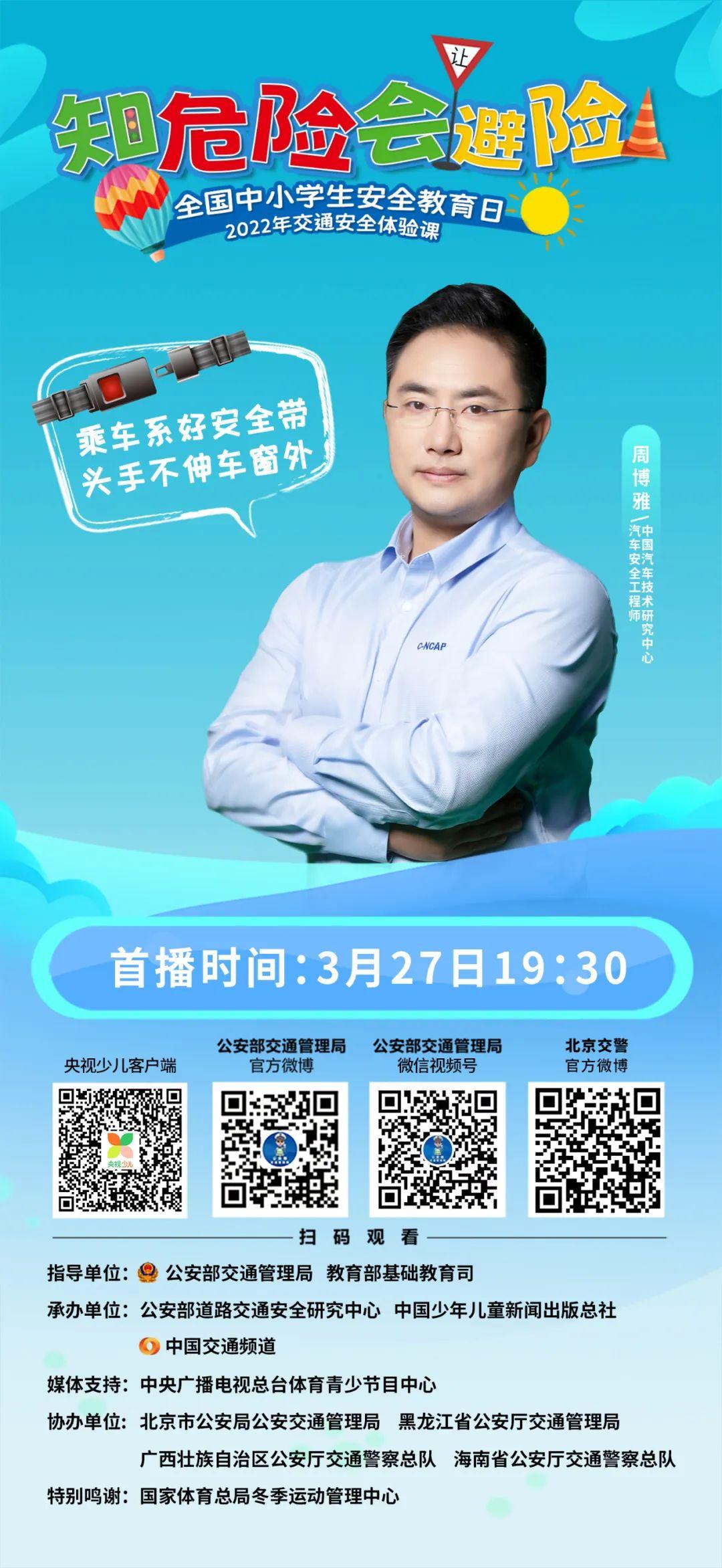 明天就是第27个“全国中小学生安全教育日”啦!公安部交通管理局、教育部基础教育司联合指导推出的“知危险 会避险”2022年全国中小学生安全教育日交通安全体验课,即将于今晚19:30和全国中小学生见面!