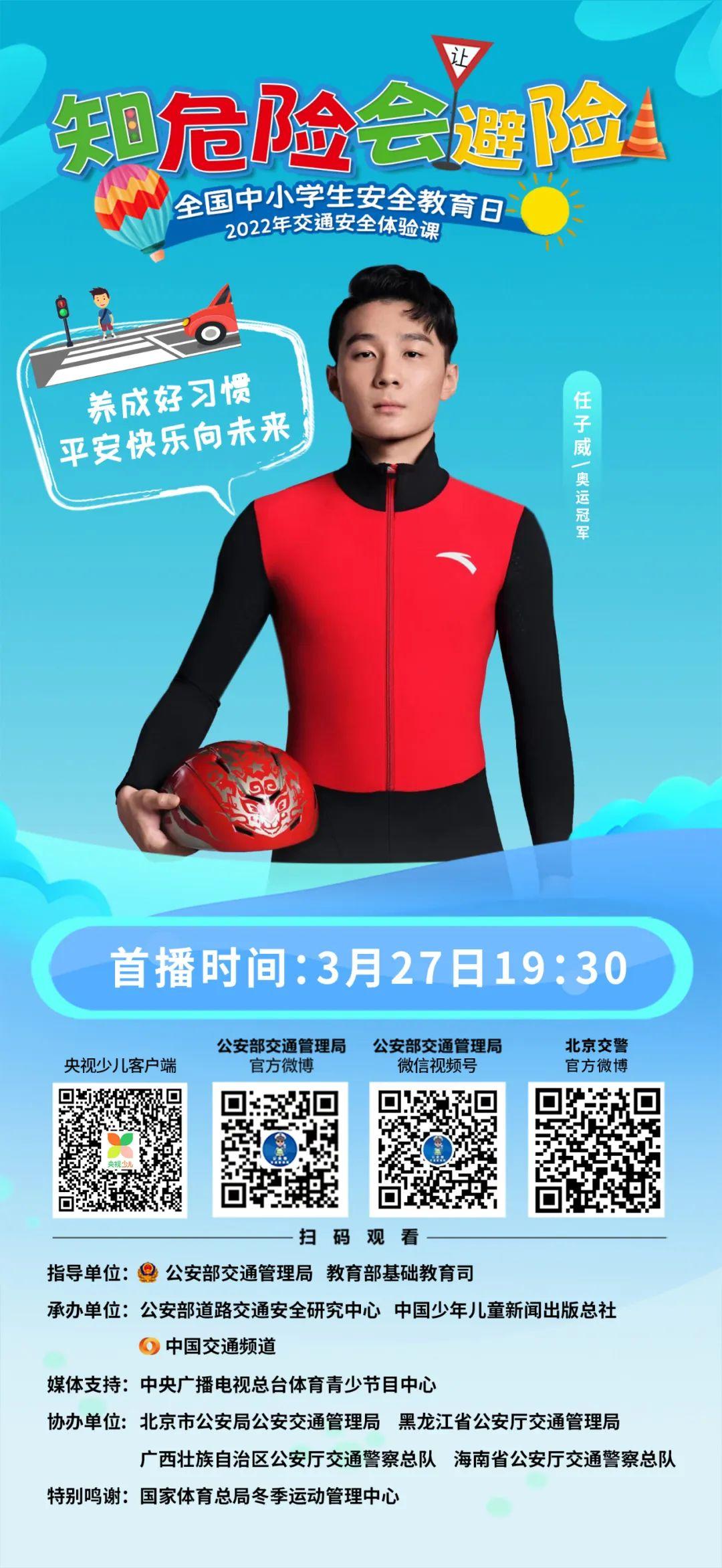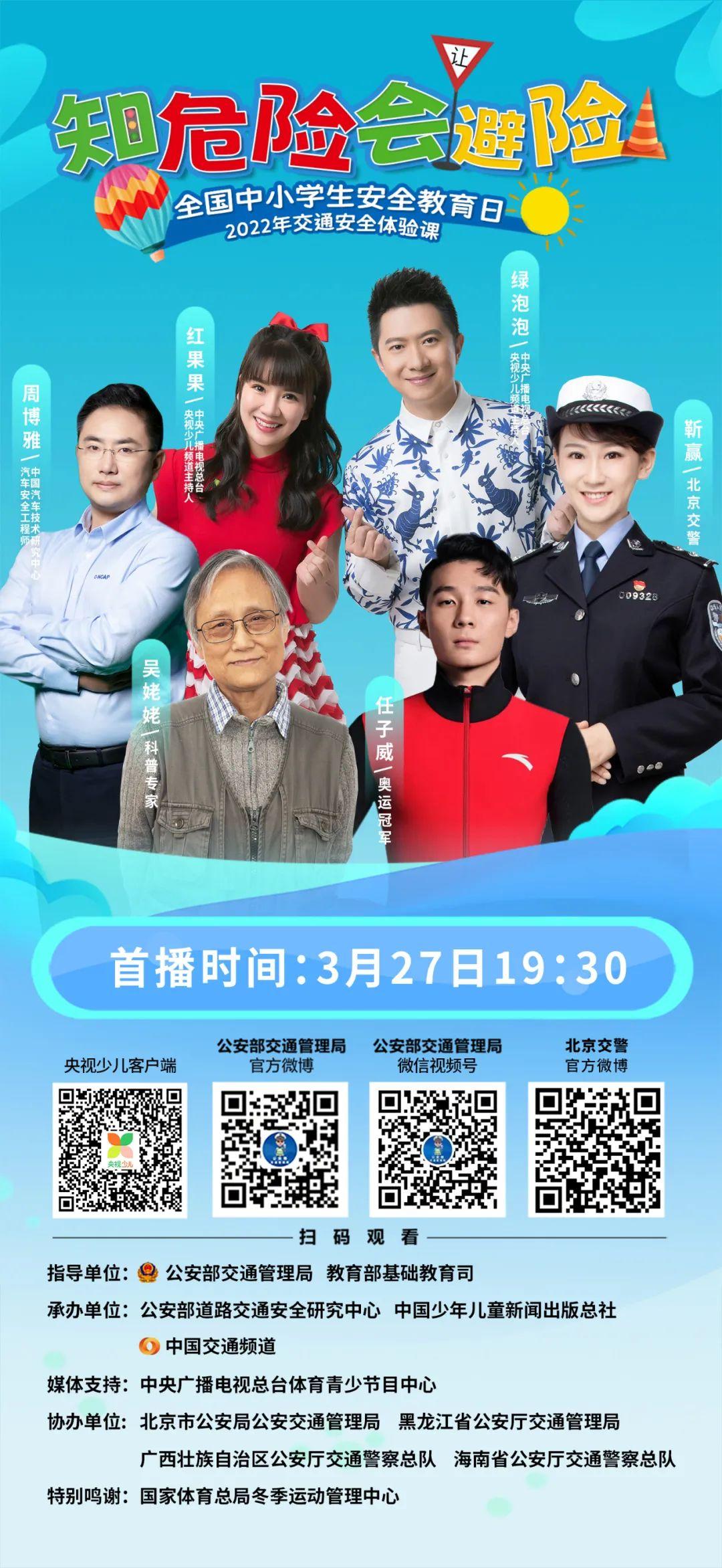 警花姐姐靳赢、科普专家吴姥姥、汽车工程师周博雅将和央视少儿频道主持人红果果、绿泡泡,一起解读中小学生出行中需要了解的安全知识,中国短道速滑名将、北京奥运会短道速滑冠军任子威也将带来自己对“规则”“习惯”“细节”的深刻体会!全国的中小学生、家长、学校老师们,都不要错过哦!