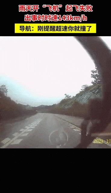 小车突然“漂移”撞上中央护栏,驾驶员称事发前想变道超车,但速度有点快(143km/h)了,加上雨天路滑,结果导致了事故。