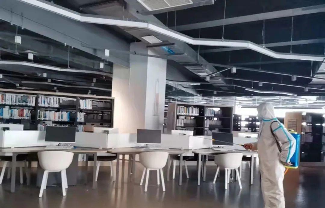 闭馆期间,我们仍不忘保障图书馆的安全及卫生,工作人员每天对场馆内外、各类设备等进行清洁和消杀,满足全馆防护需求。