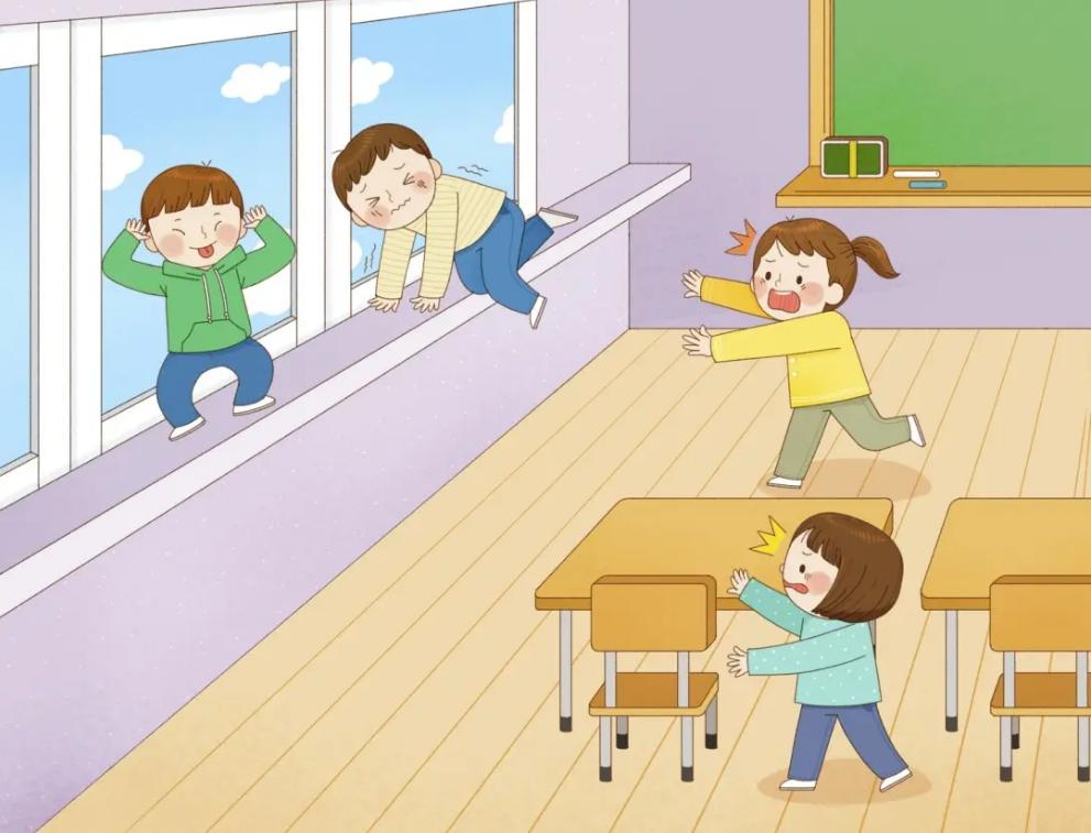 3.不随意攀爬扶手或趴在教室窗口张望,防止出现滑倒坠楼事件。