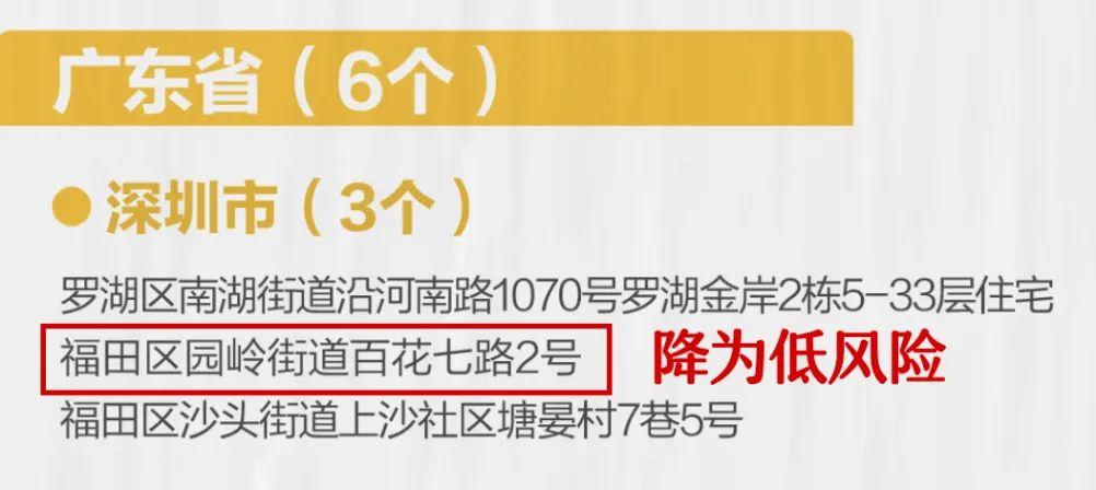 根据疫情防控工作需要,自2022年3月27日21时起,将园岭街道百花七路2号由中风险地区调整为低风险地区。